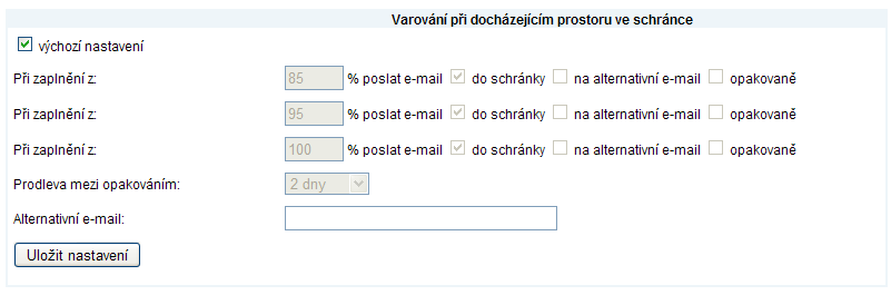 Úvodní stránka » Fotogalerie » Webmail » Varování při docházení prostoru
